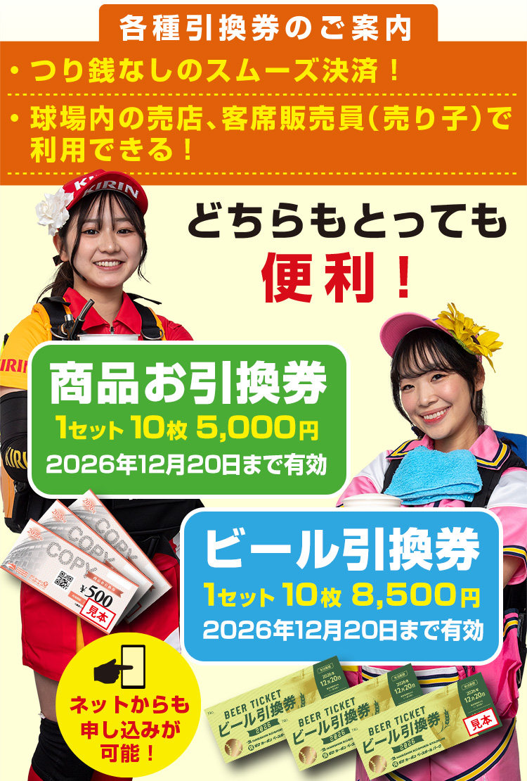 - ●阪神甲子園球場及び日鉄鋼板 SGLスタジアム 尼崎の店舗、客席販売員(売り子)にてご利用になれます。※一部を除く