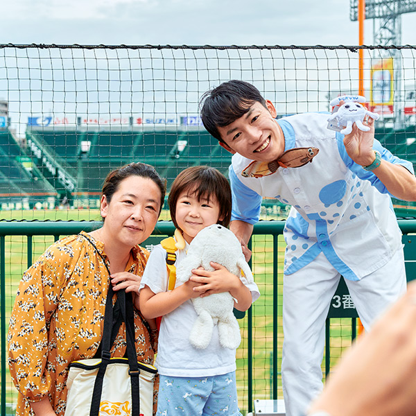 西宮のグローバル企業FURUNOの公式アンバサダー「さかなのおにいさん かわちゃん」と甲子園球場をバックに記念撮影をしよう!